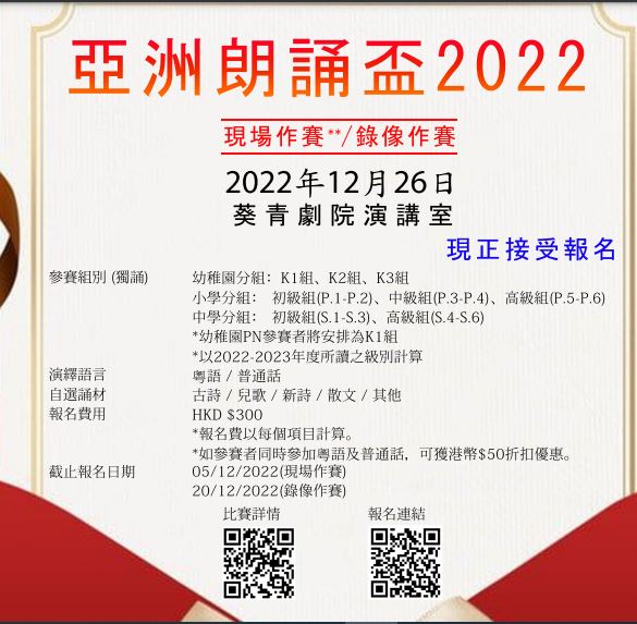 亞洲朗誦盃 2022現已接受報名